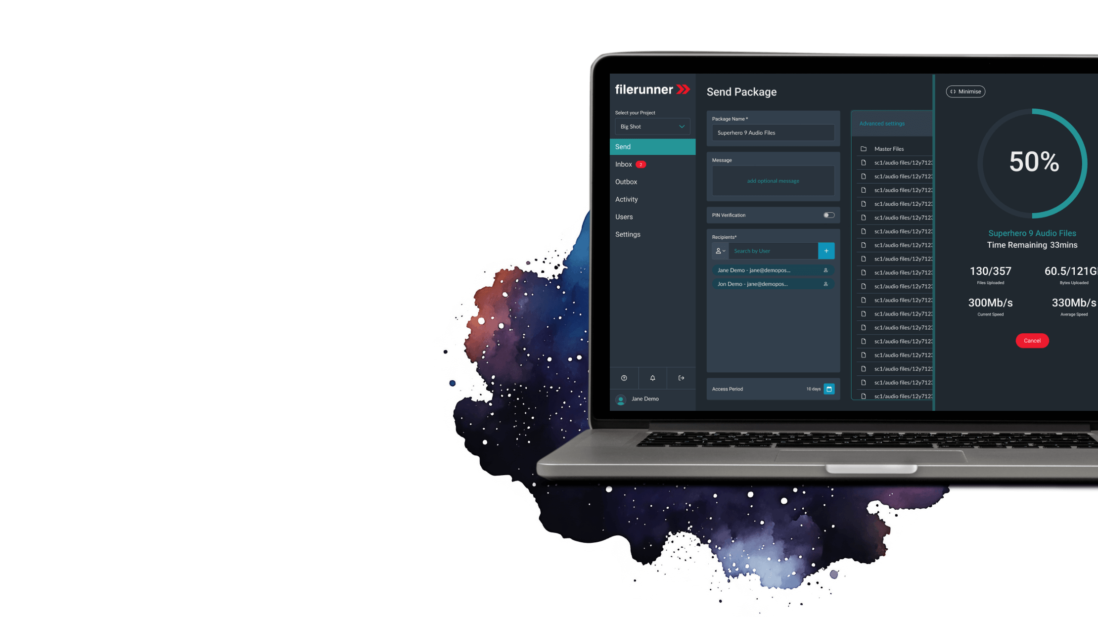FileRunner makes sending large files easy, allowing creative teams to focus on their work, not the transfers.